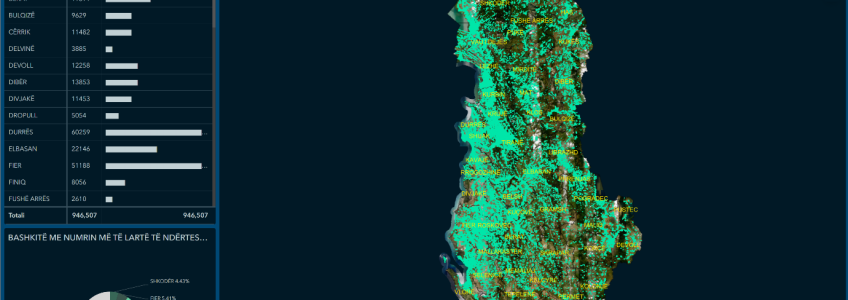 - Të dhënat janë të disponueshme në formën e një Web Map dhe Dashboard-in analitik interaktiv në platformën ArcGIS Online, i cili u mundëson institucioneve përdorues akses të menjëhershëm, vizualizim dinamik, analizë hapësinore dhe vendimmarrje të informuar mbi zhvillimin urban, rural dhe ekonomik të vendit.