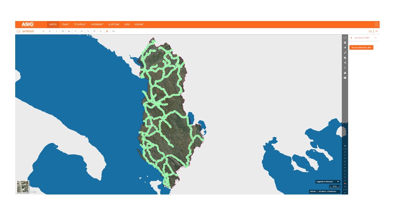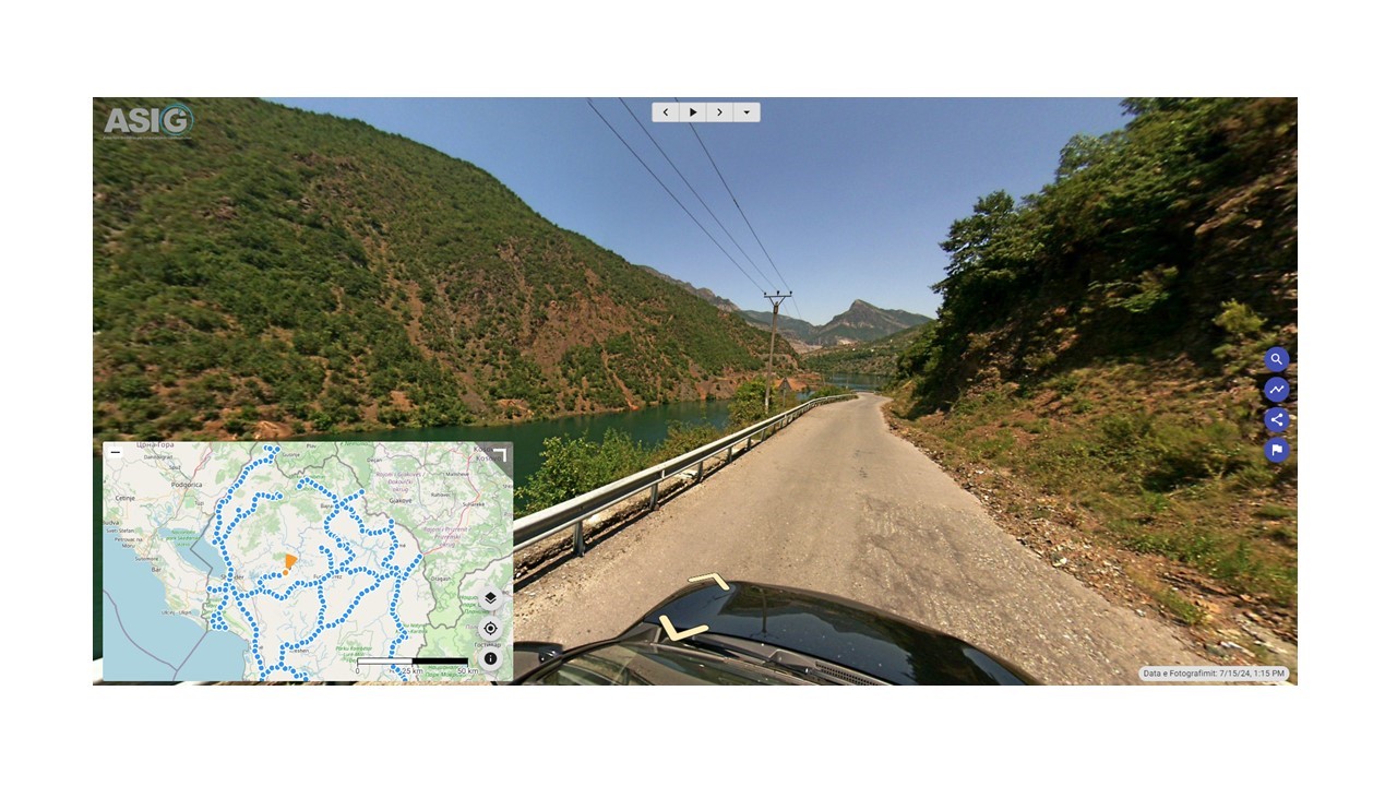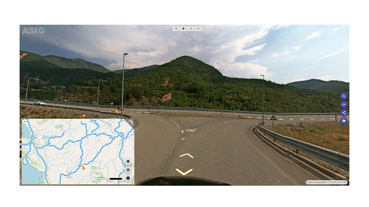 Me qëllim krijimin e fotografive panoramike të gjeoreferencuara të akseve rrugore kombëtare me teknologjinë e avancuar, me kamera Street View 360°, dhe përditësimin e tyre të vazhdueshëm, ASIG ka realizuar fotografimin dhe publikimin në Gjeoportalin Kombëtar të akseve rrugore: