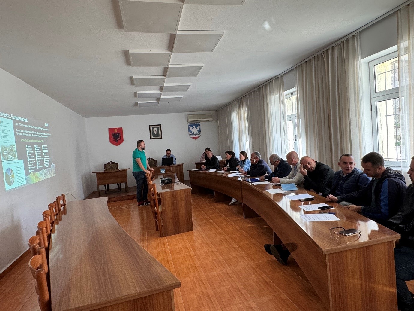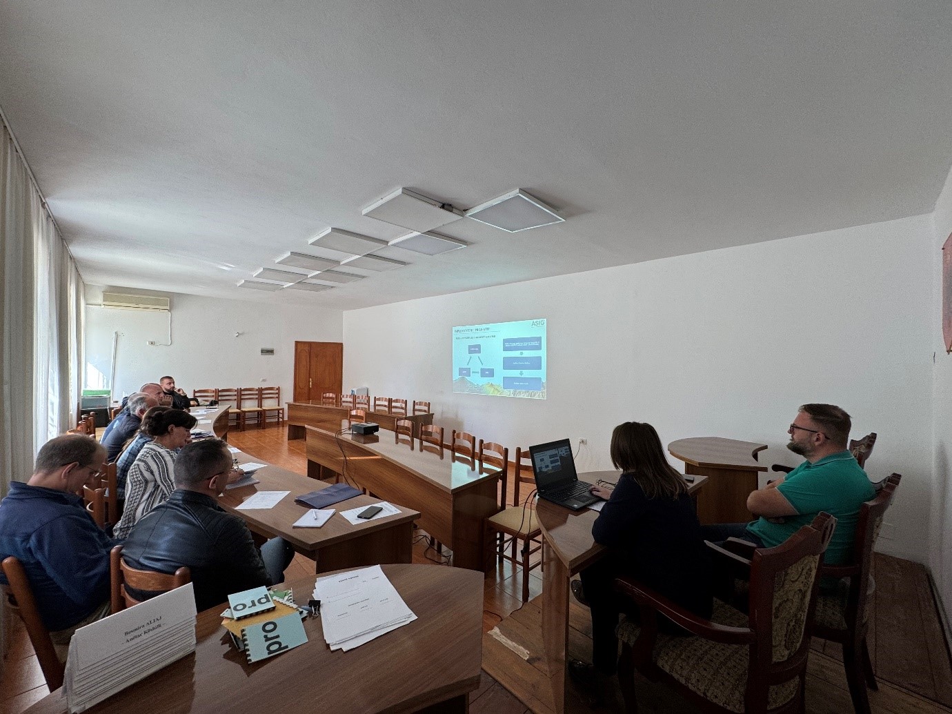 Drejtori i GIS-it Kombëtar dhe Gjeoportalit pasi bëri një prezantim të arritjeve të ASIG në fushën e gjeoinformacionit, hapat e hedhur në ndërtimin e NSDI, dhe projektet e ardhshme të institucionit tonë, i njohu gjithashtu vizitorët më në detaje me të dhënat dhe shërbimet e publikuara në Gjeoportalin Kombëtar të ASIG.