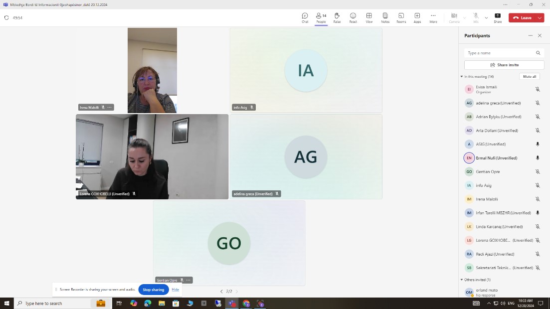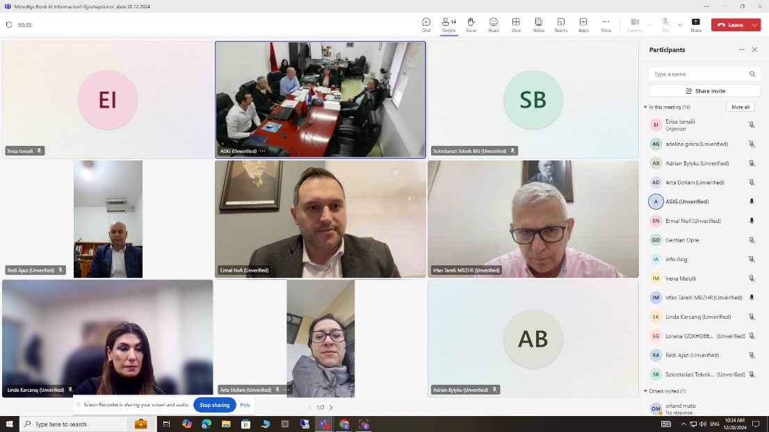 U zhvillua sot më 20.12.2024, online, mbledhja e Bordit të Informacionit Gjeohapësinor BIG nën drejtimin e kryetarit të këtij bordi z. Ermal Nufi, Drejtor i Kabinetit të Zëvendëskryeministrit.